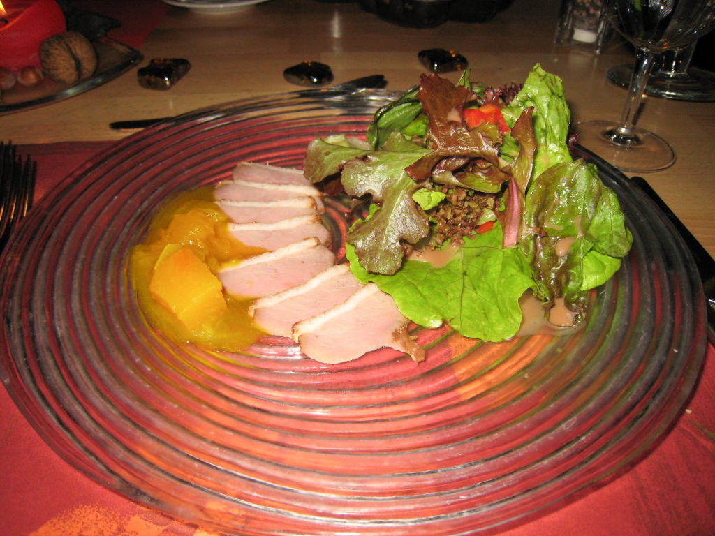Garden salad with Duck breast strips.