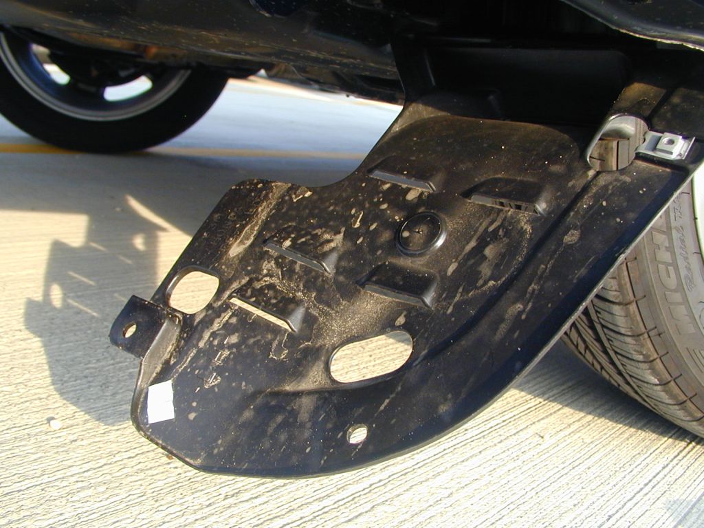Here's the splash guard pulled down once both pull-out tabs and the screw is removed. Wheeled Warriors, roll into battle!!! |